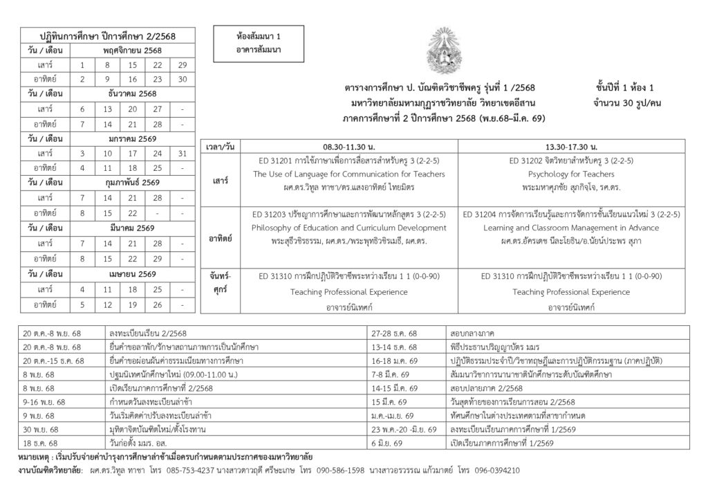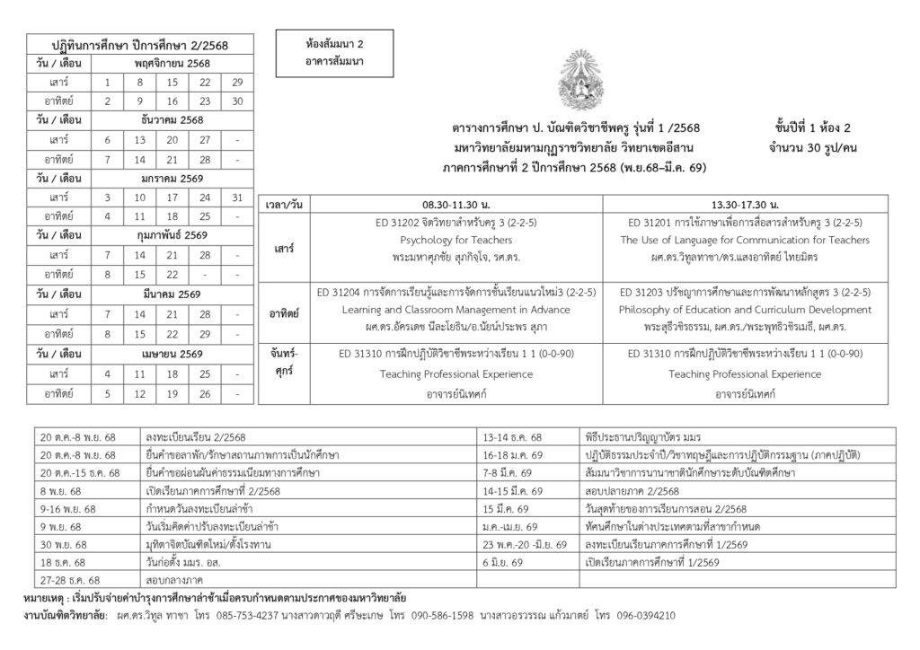 ตารางเรียน ป.บัณฑิตวิชาชีพครู 2/2568