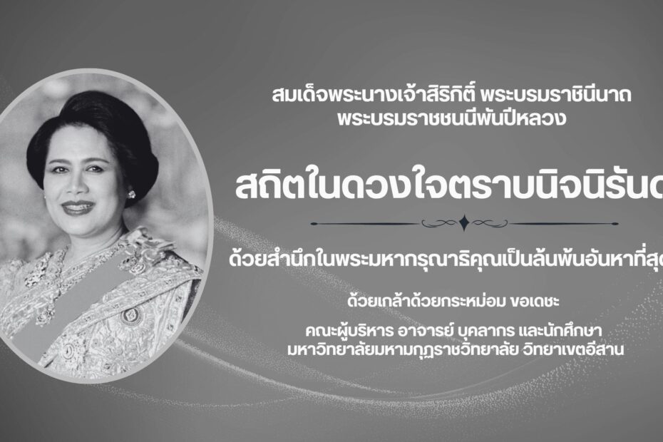 ขอน้อมถวายอาลัย พระผู้เสด็จสู่สวรรคาลัย ด้วยสำนึกในพระมหากรุณาธิคุณอันหาที่สุดมิได้ สมเด็จพระนางเจ้าสิริกิติ์ พระบรมราชินีนาถ พระบรมราชชนนีพันปีหลวง ด้วยเกล้าด้วยกระหม่อม ขอเดชะ คณะผู้บริหาร อาจารย์ บุคลากร และนักศึกษา มหาวิทยาลัยมหามกุฏราชวิทยาลัย วิทยาเขตอีสาน