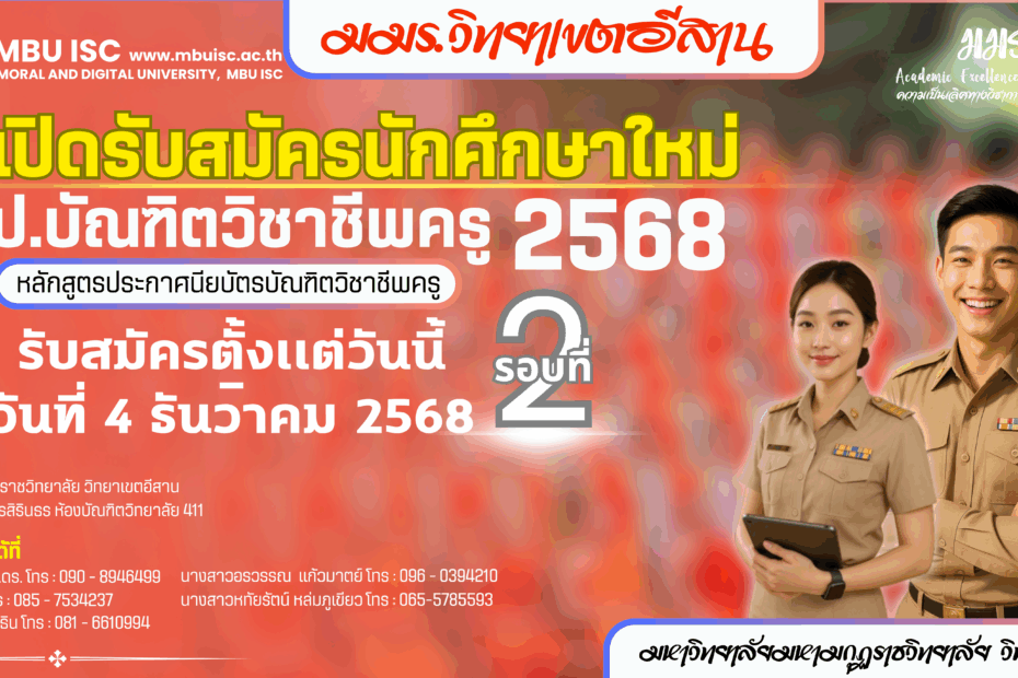 ประกาศรับสมัครบุคคลเข้าศึกษาในหลักสูตรประกาศนียบัตรบัณฑิตวิชาชีพครู ประจำปีการศึกษา 2568 รอบที่2 สมัครเรียนออนไลน์